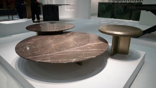 在本次家博会的展位上,A2STONE原石原筑展示了一系列全新的产品。其中,一款以天然大理石为台面的茶几吸引了众多参观者的目光。其独特的纹理和色泽,犹如天然的大理石,与周围的环境相得益彰。搭配上简约而不失质感的金属桌腿,现代感与自然美在这里完美融合,让人感受到一种别样的优雅与奢华。